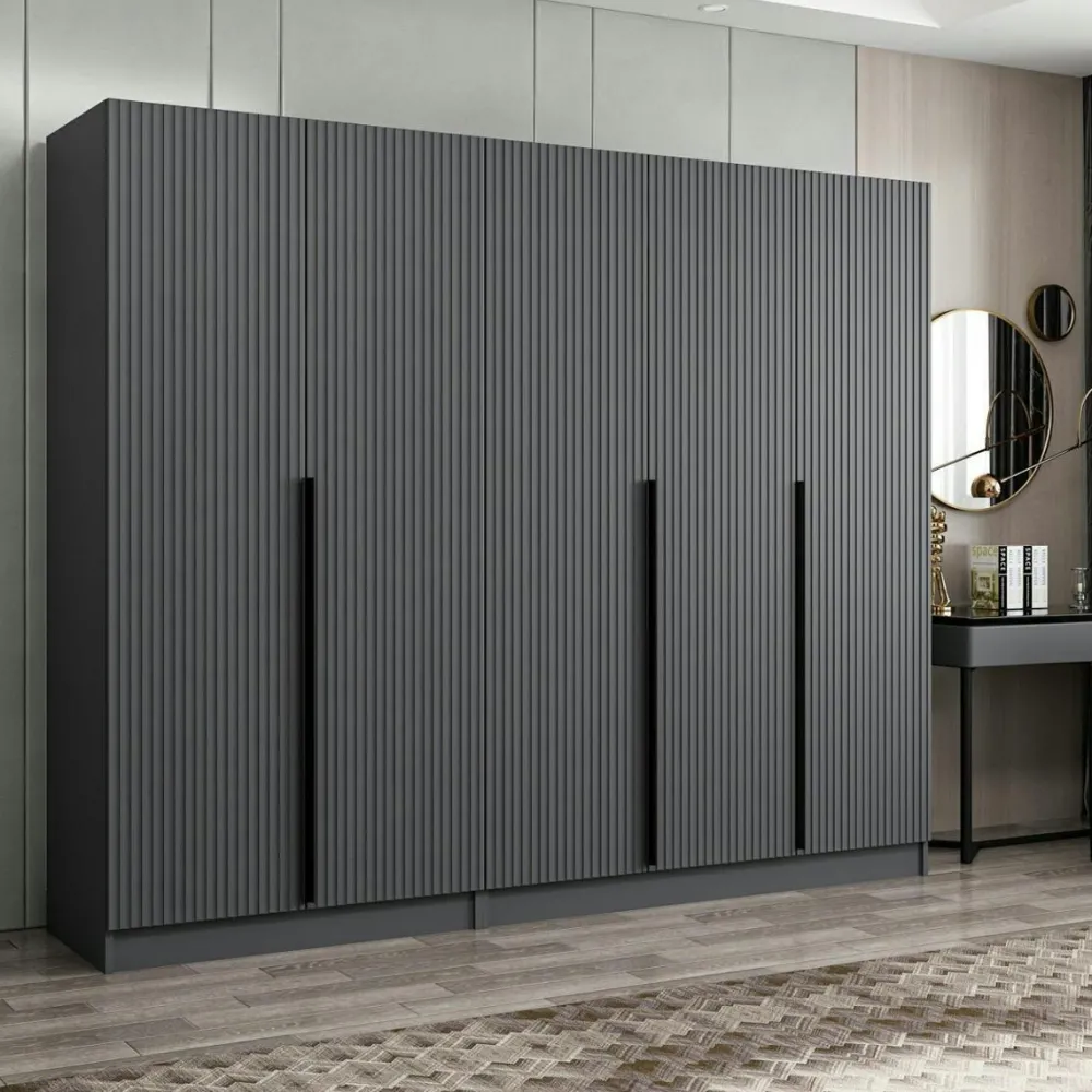 Armoires En Bois|Meubles De Chambre·Dressings|BYRON Armoire penderie grise 5 portes rainurées 3 portants