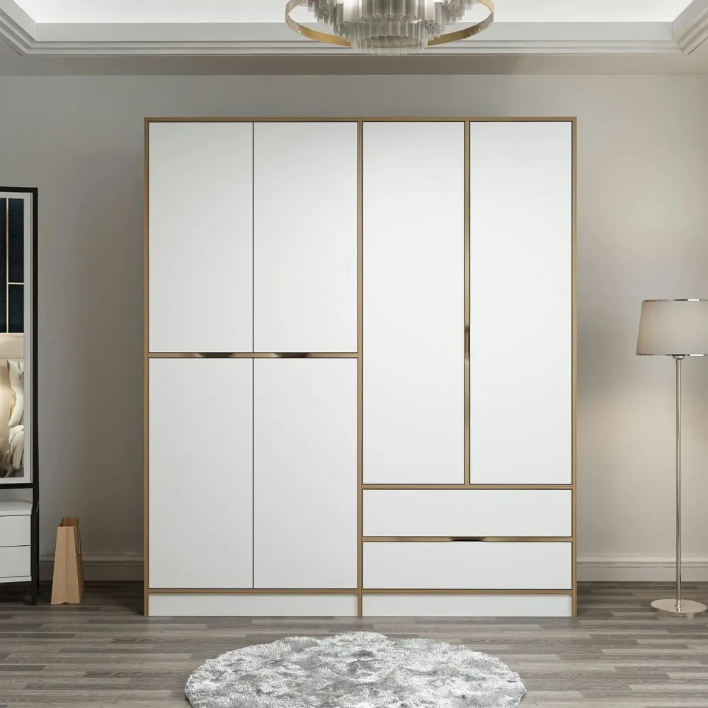 Armoires En Bois|Meubles De Chambre·Dressings|BYRON Armoire penderie moderne – 4 portes blanches L.140 cm