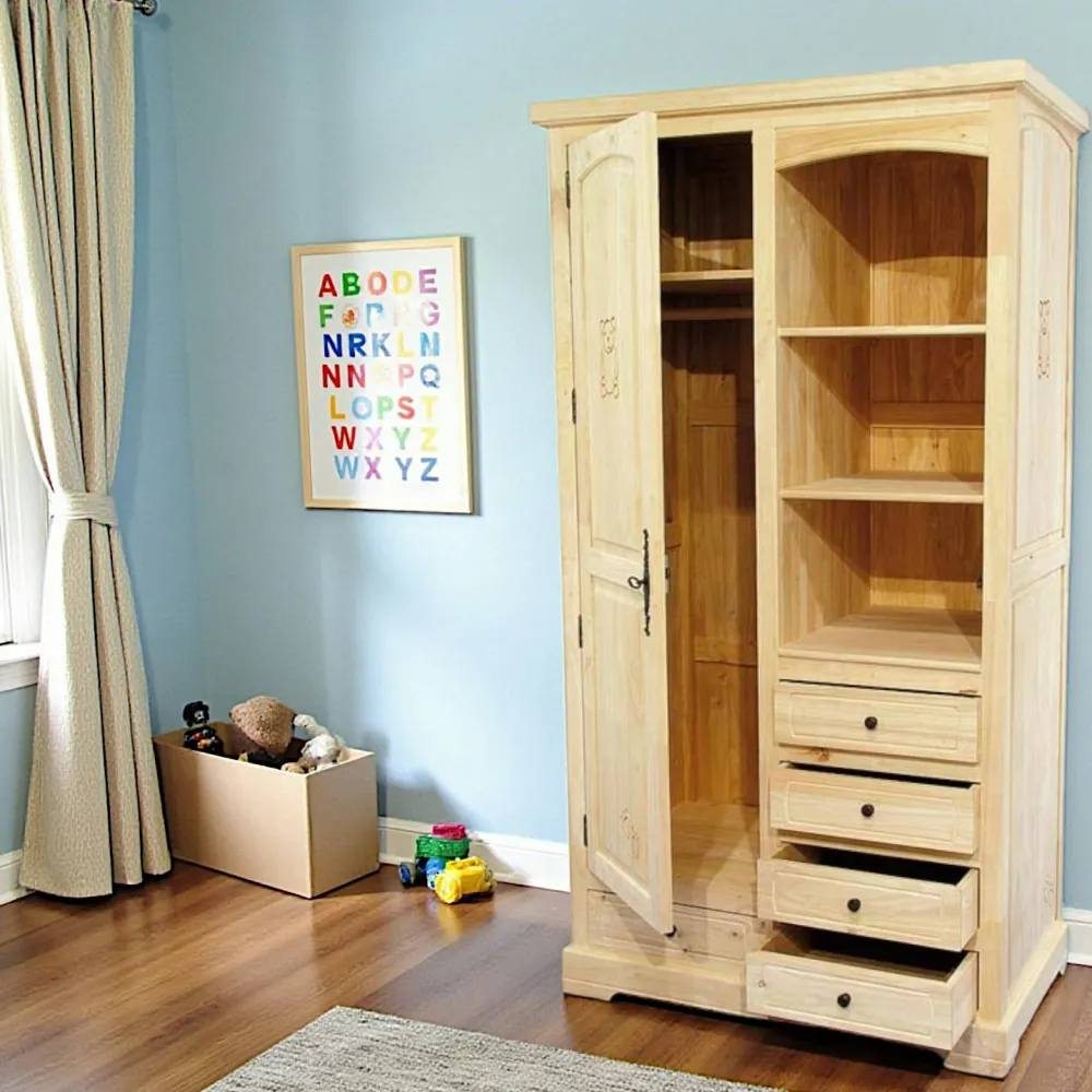Armoires Vintage|Armoires En Bois|Tradition Armoire Hévéa 1 porte, 5 tiroirs, 3 niches 100x56x185cm