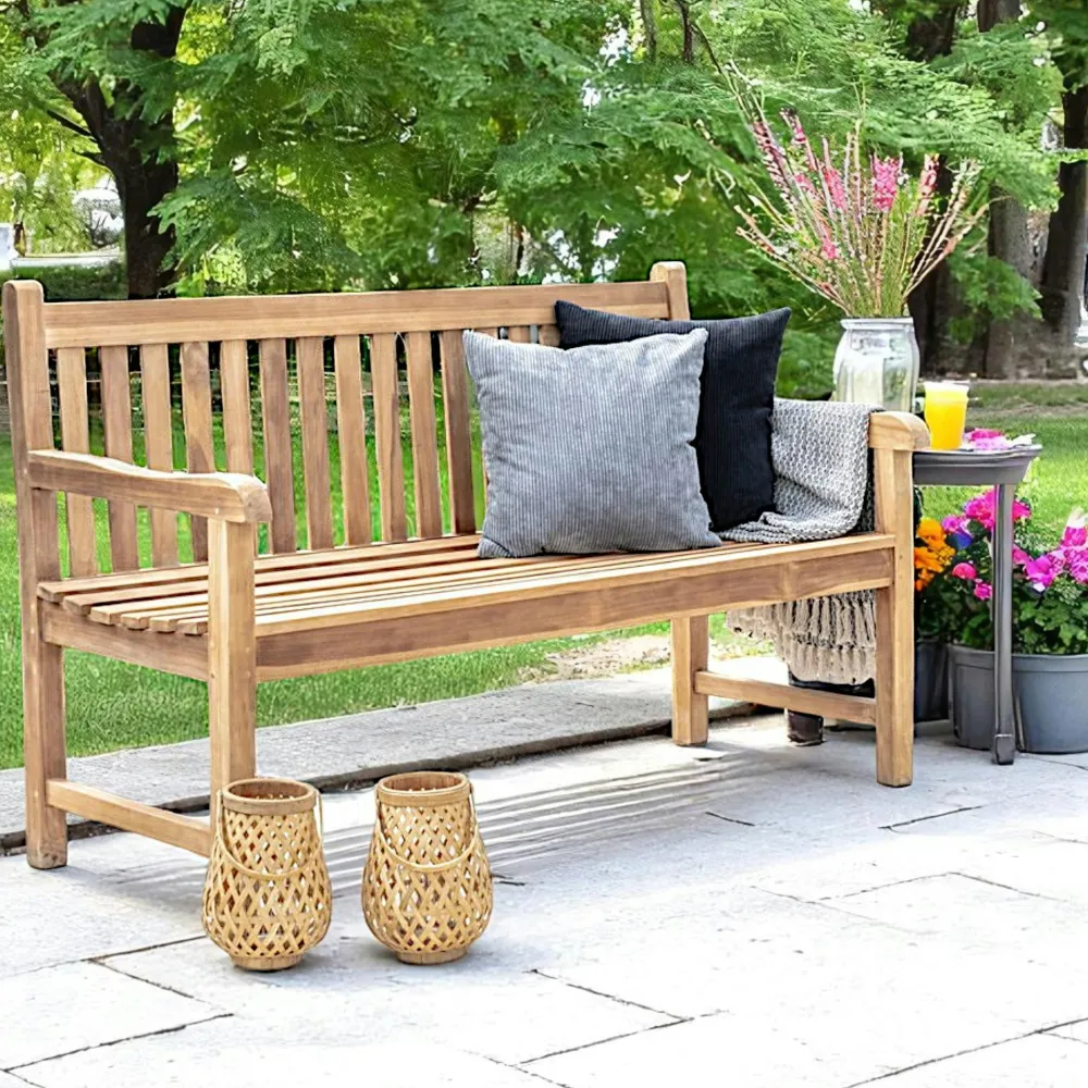 Bancs De Jardin|MENDOZA Banc de jardin en teck avec dossier à barreaux 150 cm