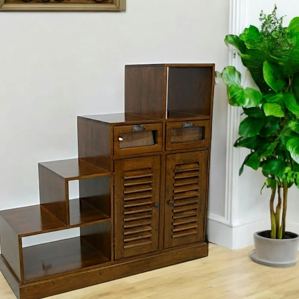 Bibliothèques En Bois|Bibliothèques En Bois|Maori Meuble Escalier double face Hévéa 2 portes persiennes, 2 tiroirs, 3 niches, 105x40x102cm