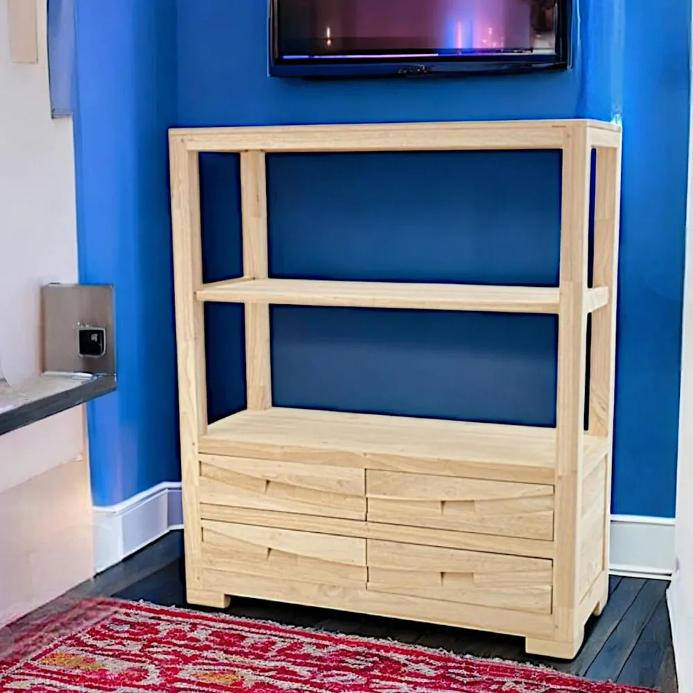 Bibliothèques En Bois|Bibliothèques En Bois|Niagara Bibliothèque Hévéa 4 tiroirs, 2 étagères 100x40x118cm