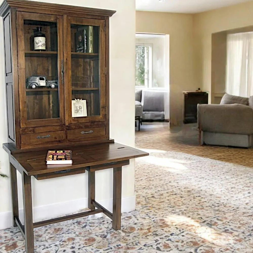 Bibliothèques En Bois|Bibliothèques En Bois|Tradition Bibliothèque Bureau Hévéa 2 portes vitrées, 2 tiroirs 95x55x190cm