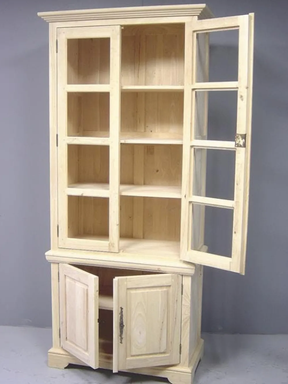 Bibliothèques En Bois|Bibliothèques En Bois|Tradition Bibliothèque vitrée 4 portes hévéa 90x45x205cm