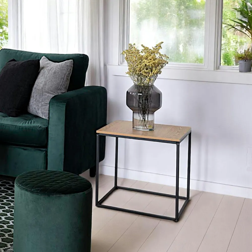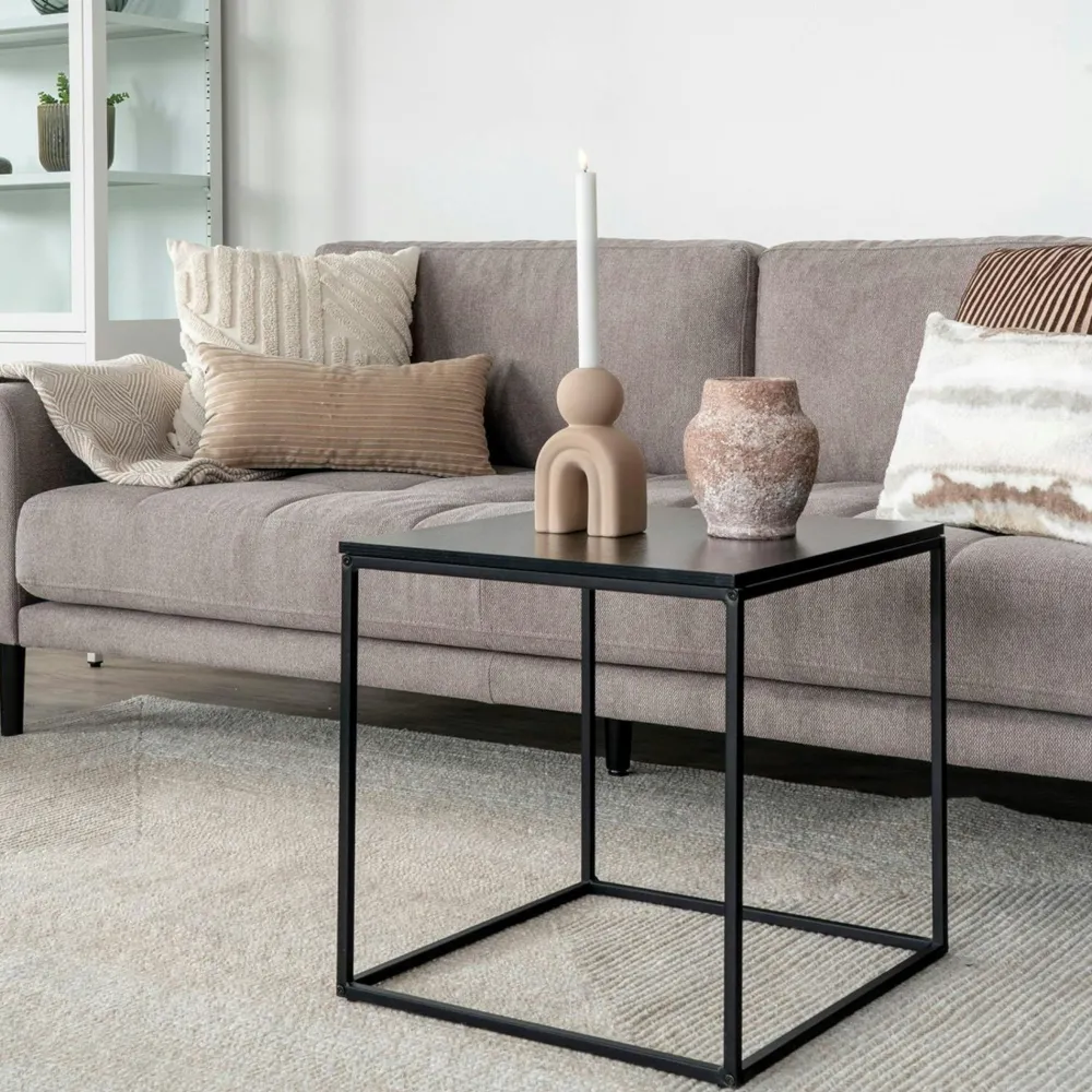 Bouts De Canapé En Métal|Bouts De Canapé En Bois|TALLINN Bout de canapé cube noir – plateau effet chêne clair