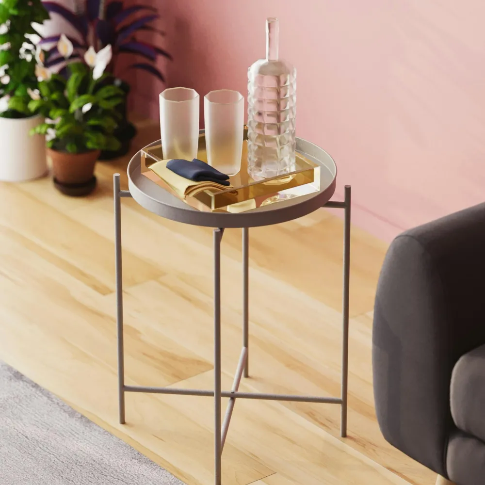 Bouts De Canapé En Métal|SFAX Petite table d’appoint grise – structure ronde, métal