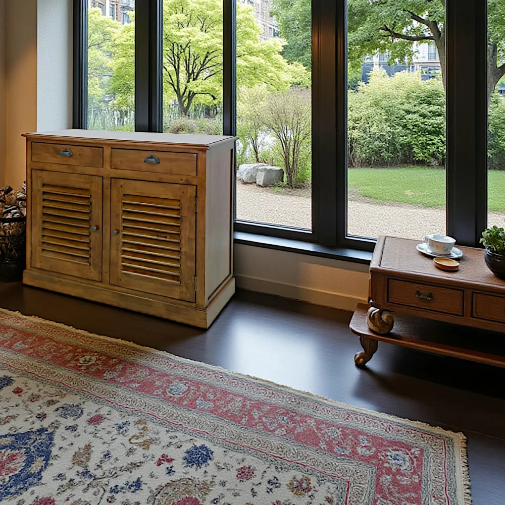 Buffets Bas|Buffet Bas|Maori Buffet Hévéa 2 portes persiennes, 2 tiroirs, 100x45x80cm