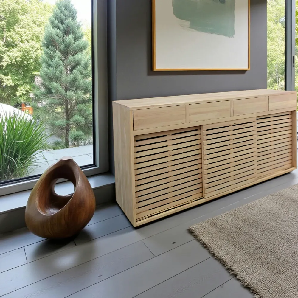 Buffets En Bois|Buffets En Bois|Tessa Buffet Enfilade Hévéa 4 portes, 4 tiroirs 200x50x100cm