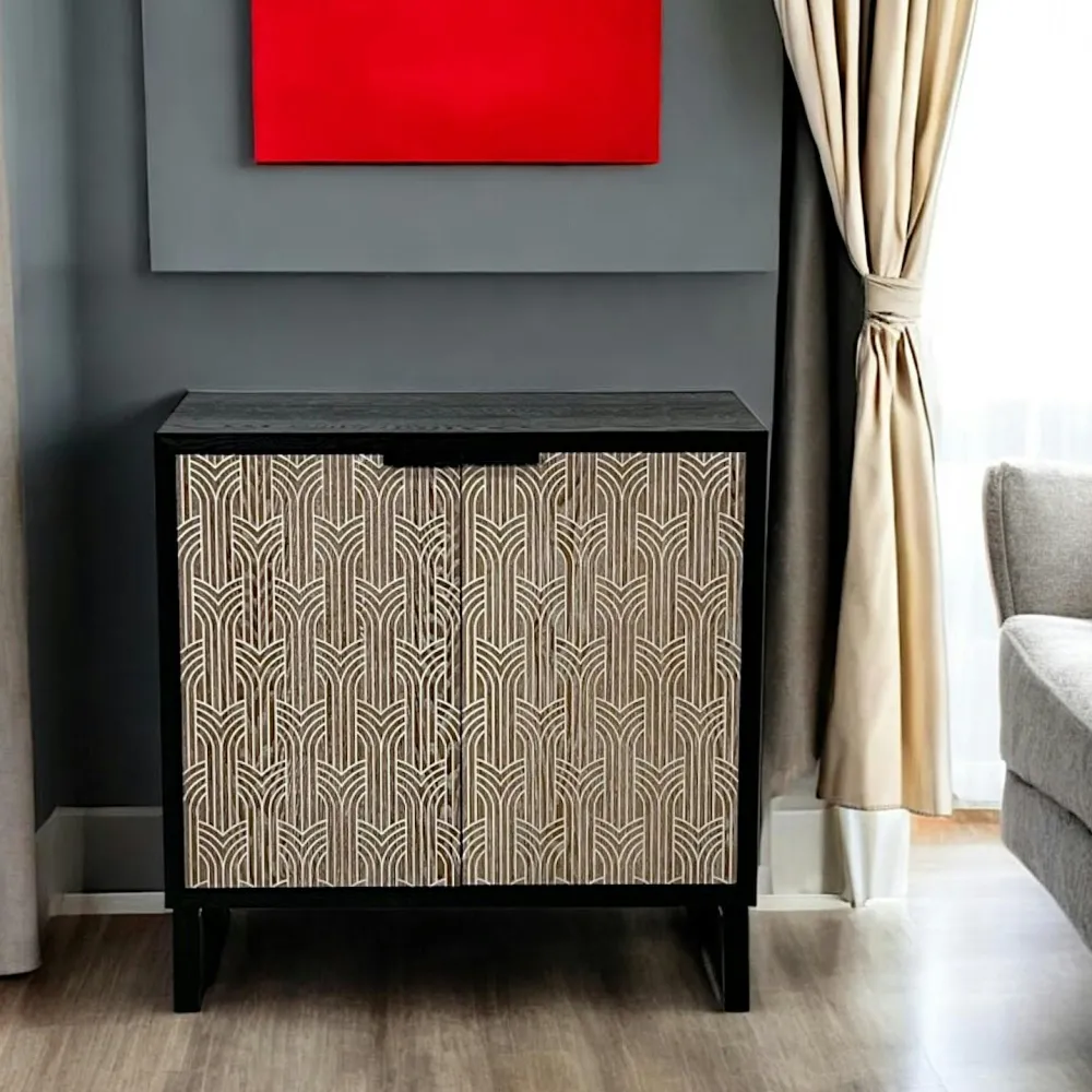 Buffets Contemporains|Buffets Contemporains| Buffet 2 portes bois et métal décor oriental