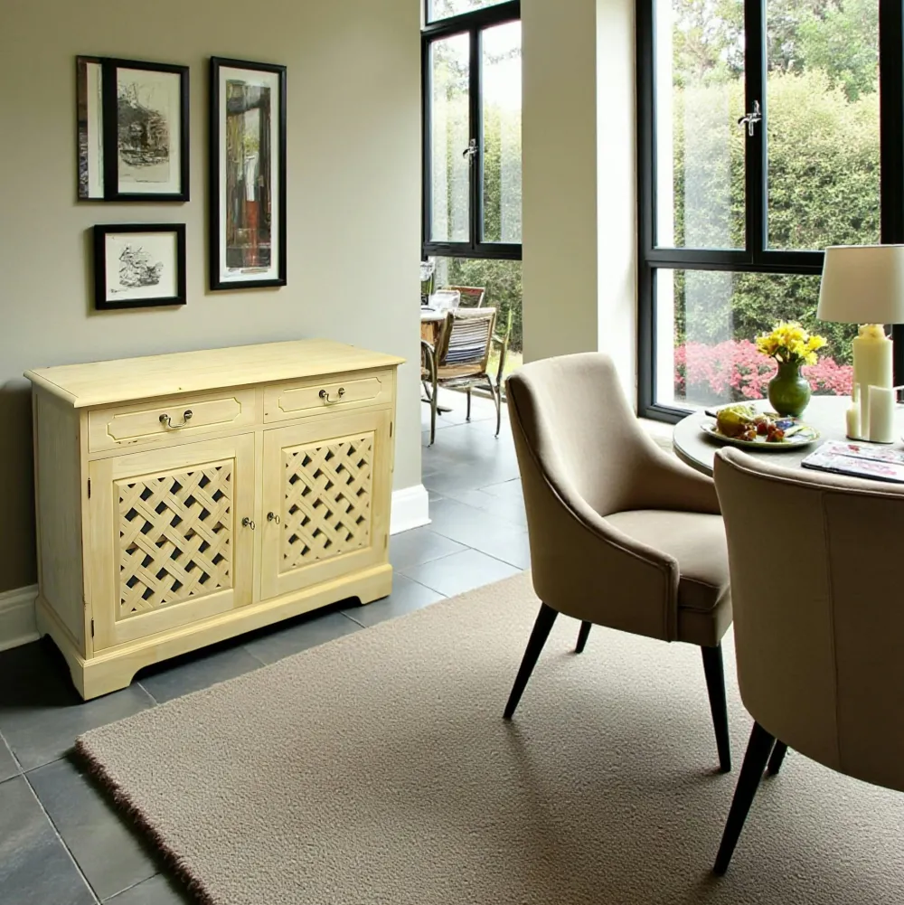Buffets En Bois|Buffets En Bois|Maori Buffet Hévéa 2 tiroirs, 2 portes motif tressé 120x40x90cm