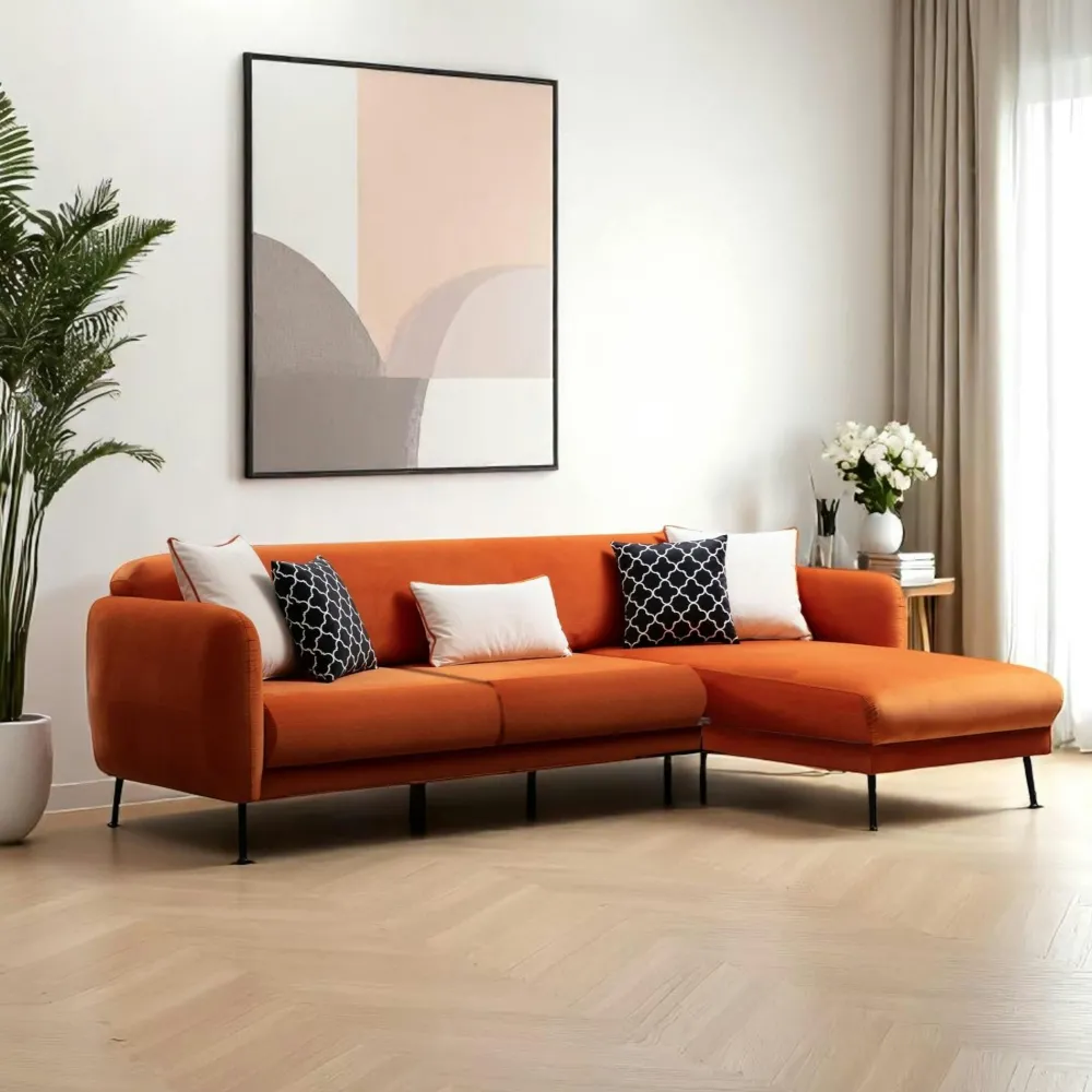 Canapés 3 Places|Canapés D’Angle|PAIMPOL Canapé d’angle orange – lit d’appoint, côté droit