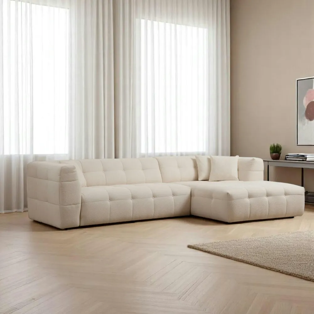 Canapés 3 Places|Canapés D’Angle|RAVELLO Canapé d’angle beige – capitonné, côté droit