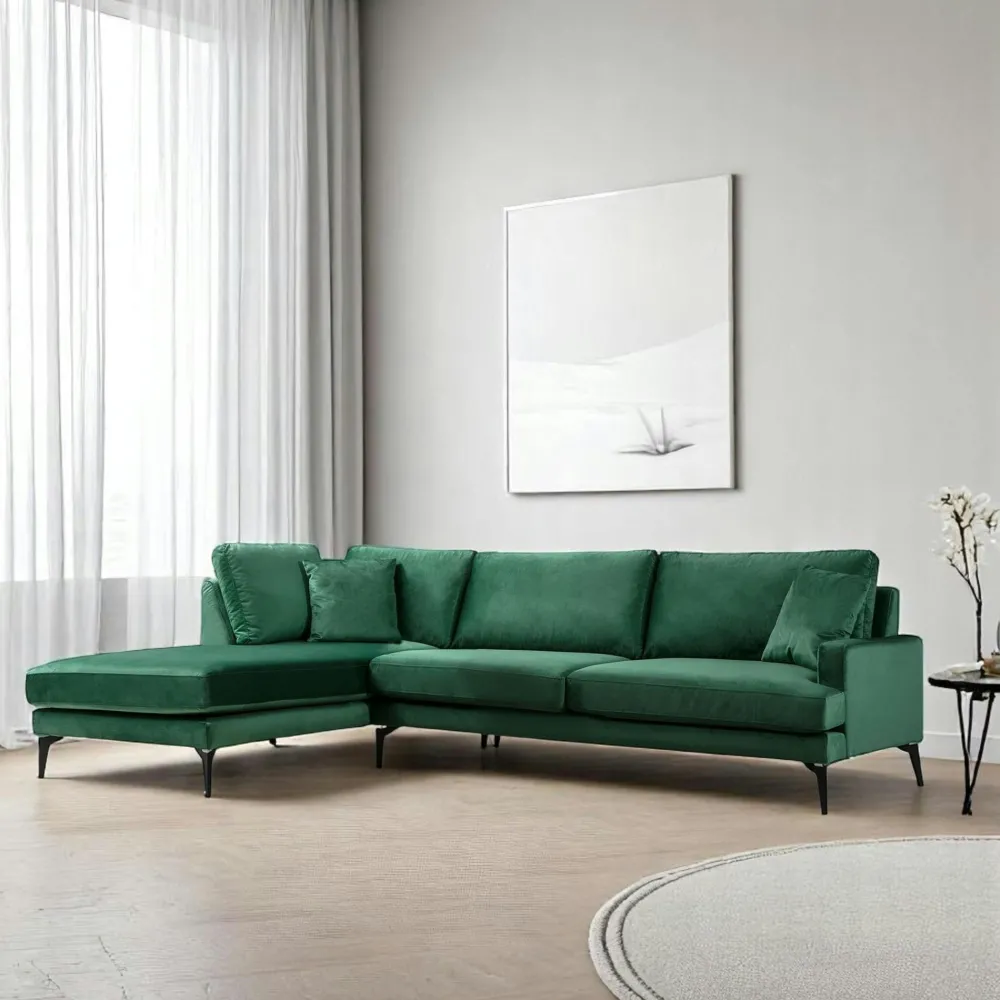 Canapés 3 Places|Canapés D’Angle|SEATTLE Canapé d’angle vert en velours – côté gauche