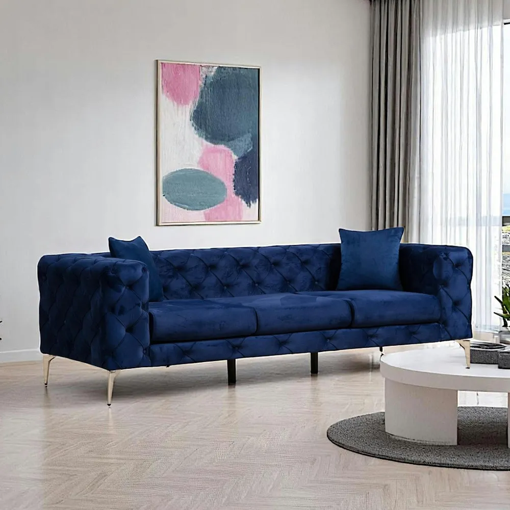 Canapés 3 Places|Canapés En Tissu|DOVER Canapé 3 places bleu nuit en velours capitonné