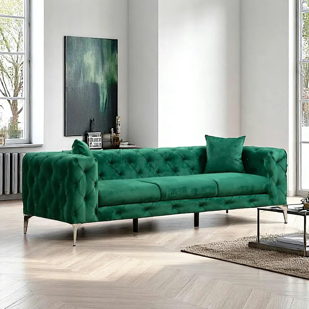 Canapés 3 Places|Canapés En Tissu|DOVER Canapé 3 places vert en velours capitonné