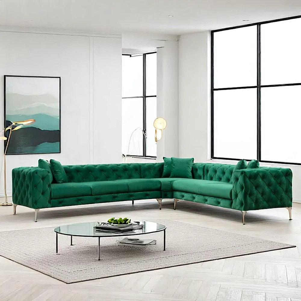 Canapés En Tissu|Canapés 3 Places|DOVER Canapé d’angle vert en velours capitonné – côté droit