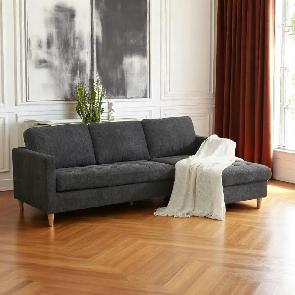 Canapés En Tissu|Canapés D’Angle|BERLIN Canapé 3 places gris foncé avec méridienne