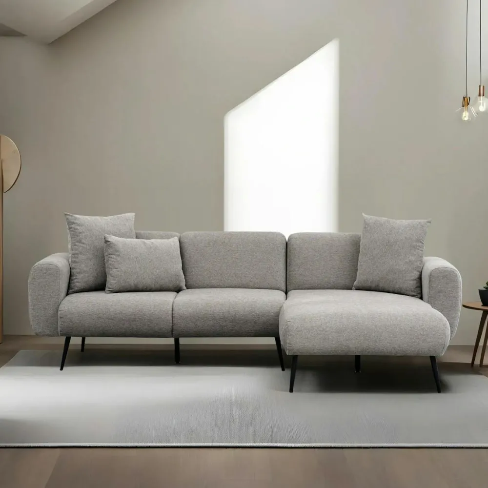 Canapés En Tissu|Canapés D’Angle|YOKOH Canapé d’angle gris clair pieds métal (côté droit)