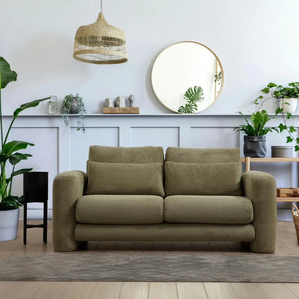 Canapés En Tissu|LUCCA Canapé 2 places vert velours côtelé, lignes arrondies