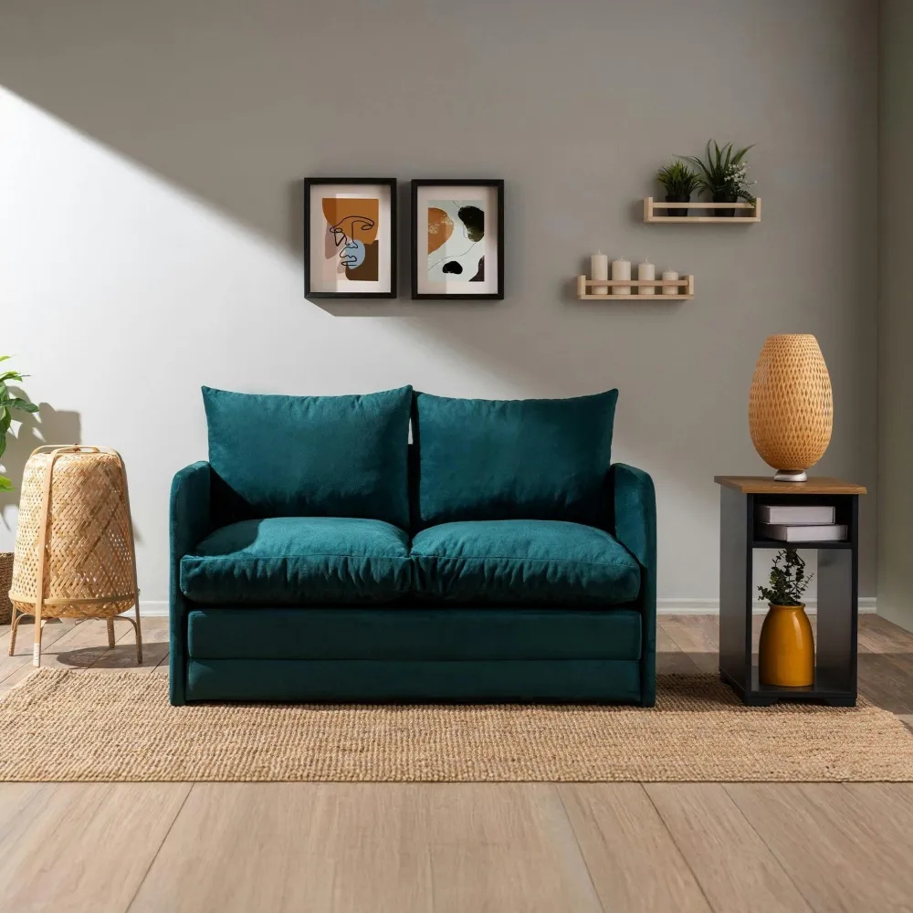 Canapés En Tissu|ORURO Canapé-lit d’appoint en tissu bleu lagon, 2 personnes