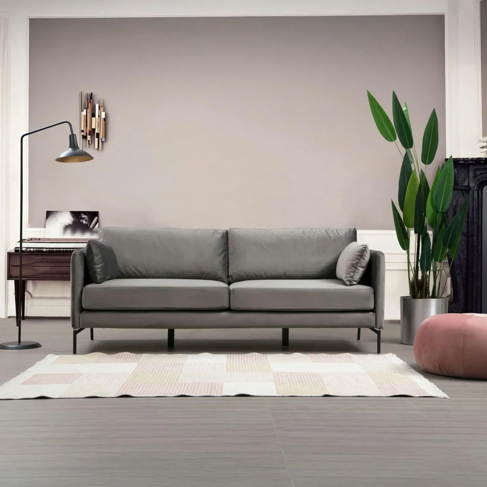 Canapés En Tissu|RANCHI Canapé en velours 2 places gris, accoudoirs fins