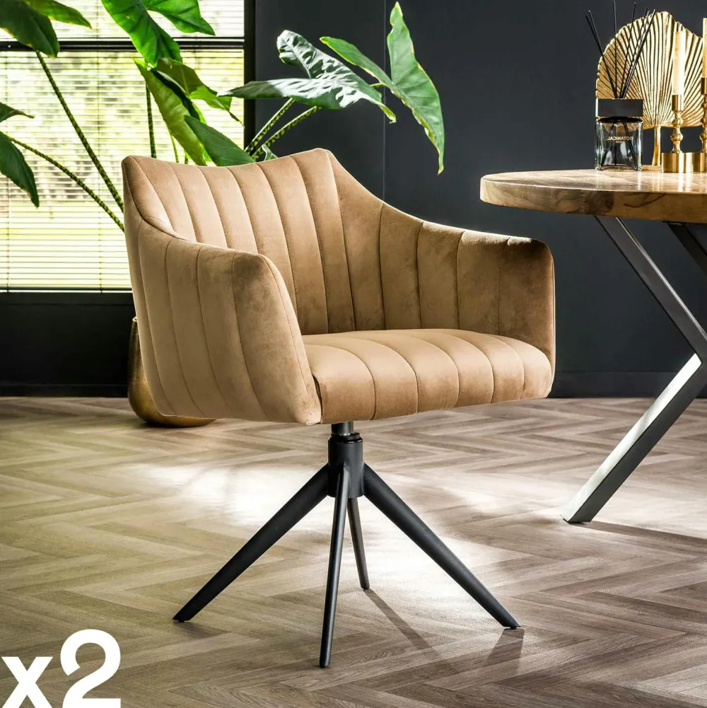 Chaises Avec Accoudoirs|Chaises Contemporaines|Melbourne Fauteuil pivotant de table en velours gris à larges bandes (lot de 2)