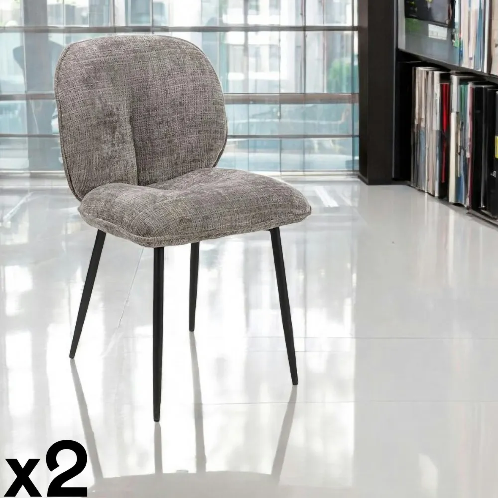 Chaises Capitonnées|Chaises Contemporaines|IENA Chaise cosy en tissu gris (lot de 2)
