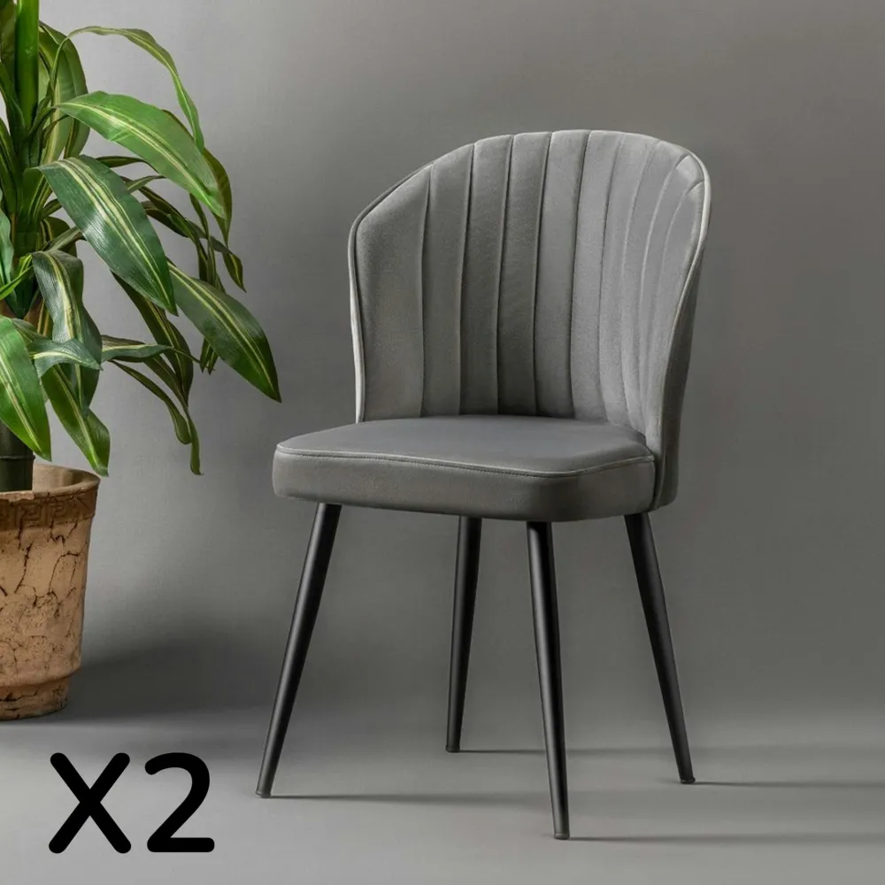 Chaises Capitonnées|Chaises Contemporaines|ROSARIO Chaise en velours gris – dossier enveloppant (Lot de 2)