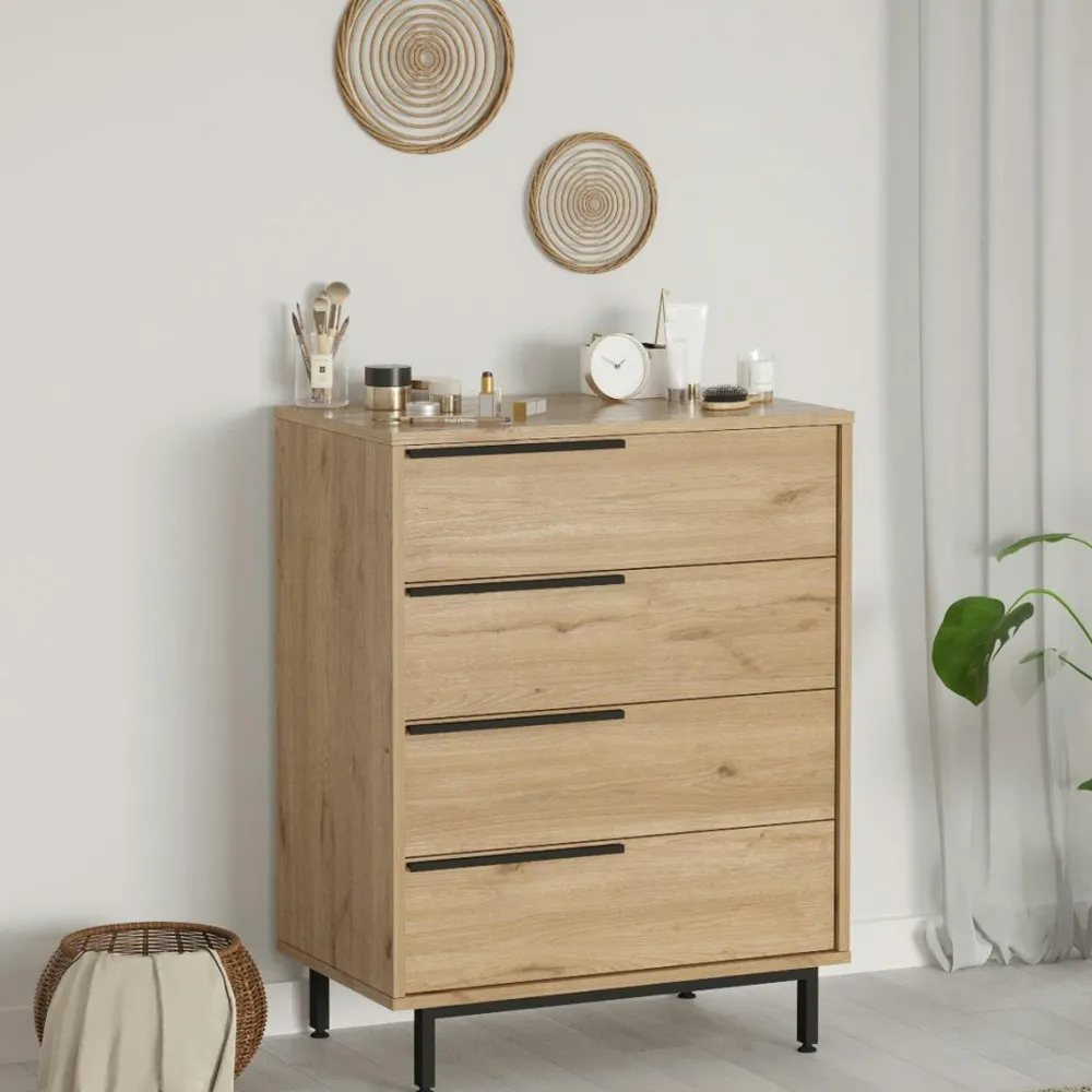 Commodes Blanches|Commodes En Bois|JENA Commode haute blanche à détails noirs, 4 tiroirs