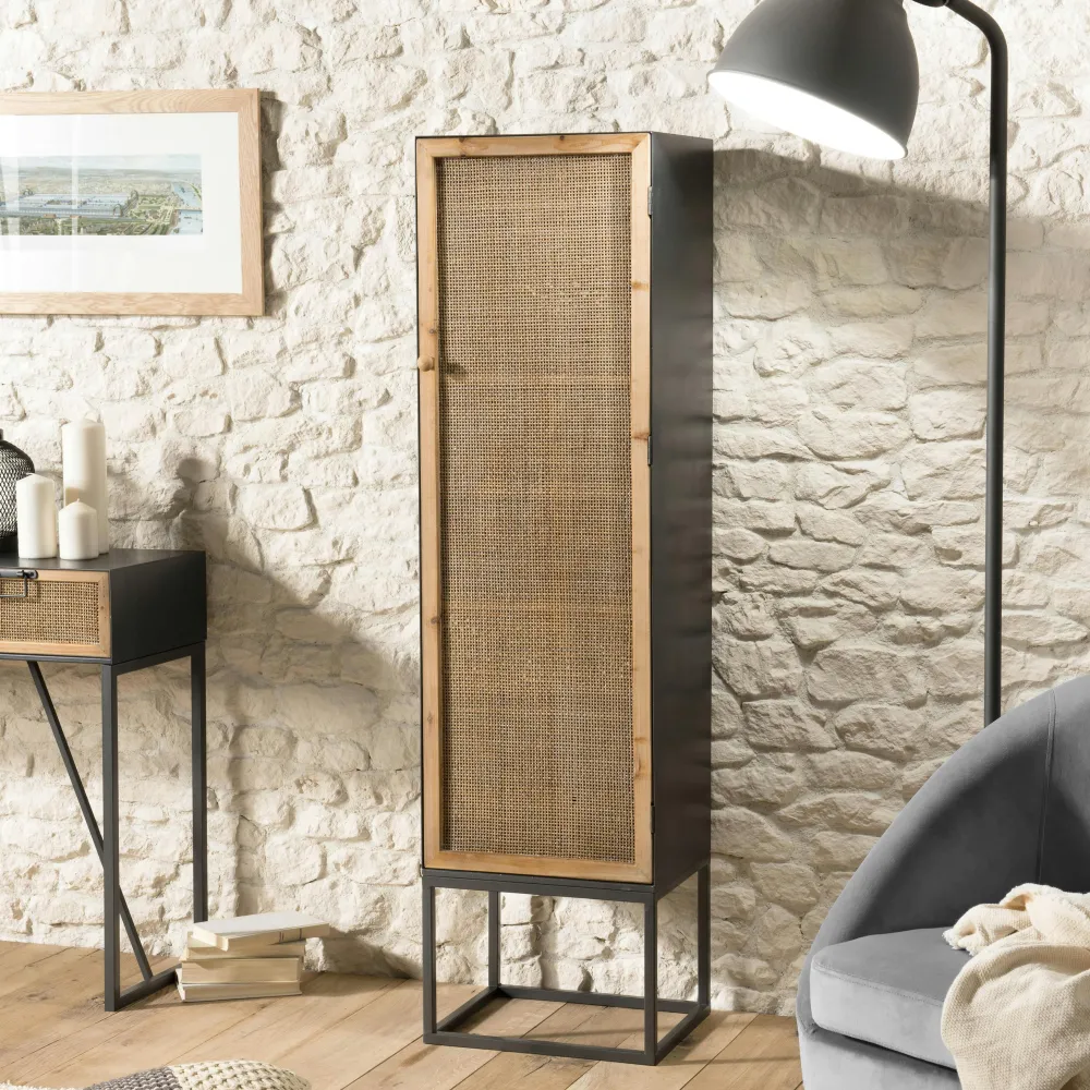 Commodes En Bois|Swing Commode en teck recyclé 3 tiroirs tressage coco