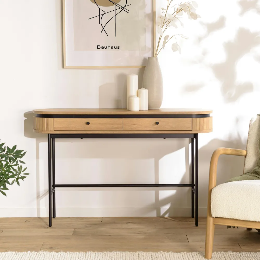 Consoles Avec Tiroirs|Consoles Avec Tiroir|JINAN Console 2 tiroirs bords arrondis décor strié