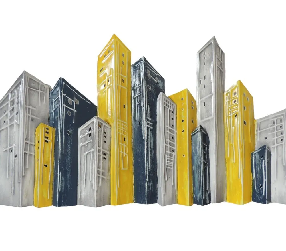 Décorations Murales| Décoration murale métal buildings gris et jaunes