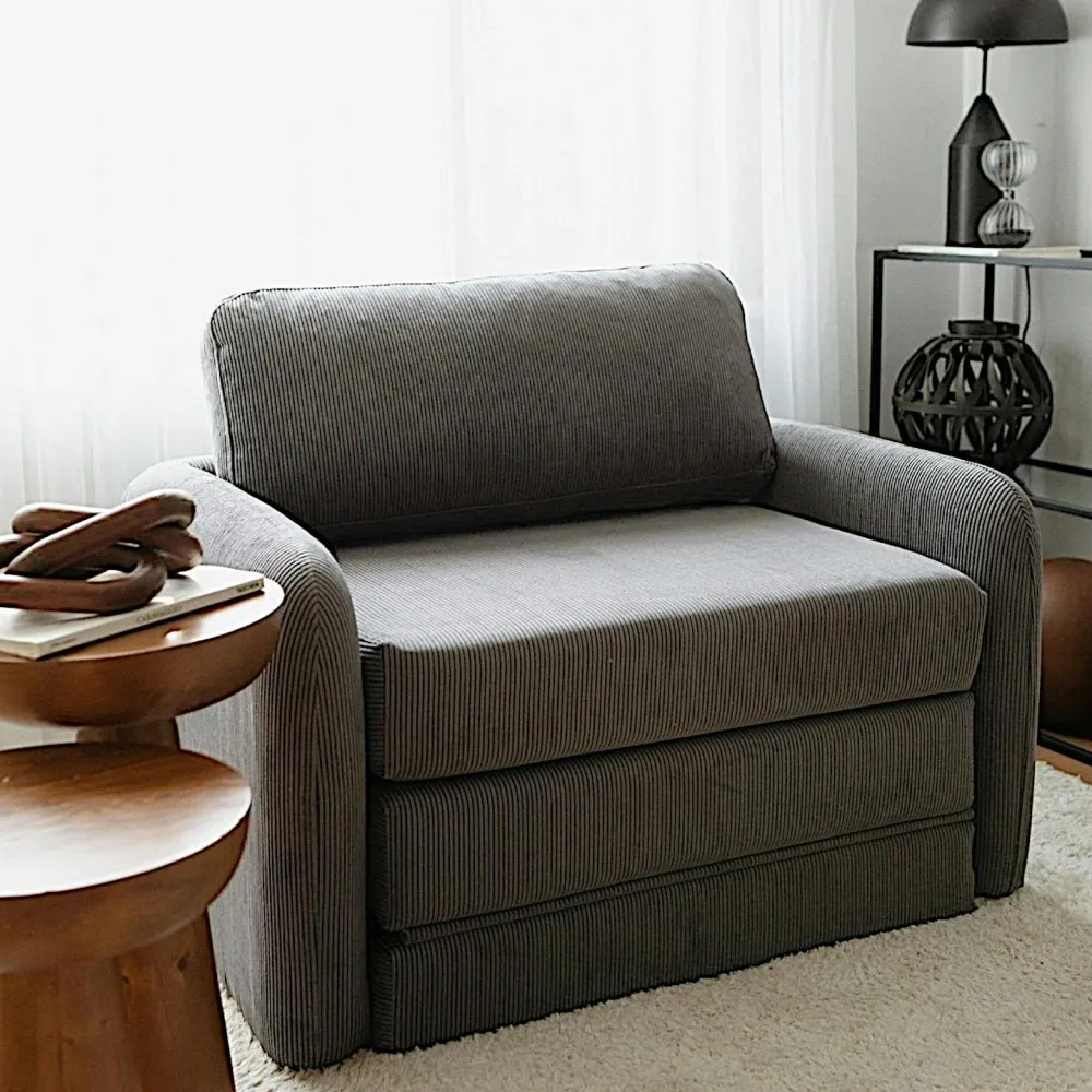Fauteuils En Tissu|Fauteuils Convertibles|QUITO Fauteuil convertible écru velours côtelé, 1 place
