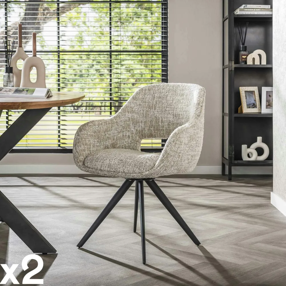 Meubles De Cuisine·Chaises|Chaises Avec Accoudoirs|CREEK Fauteuil de table pivotant en tissu gris clair chiné (lot de 2)