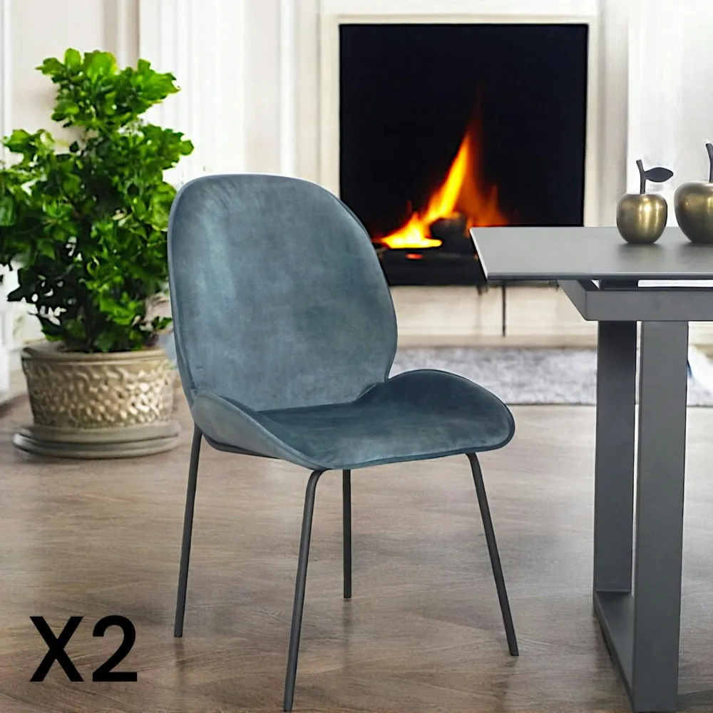 Meubles De Cuisine·Chaises|Chaises Velours|FLORENCE Chaise contemporaine en velours bleu glacier (lot 2)