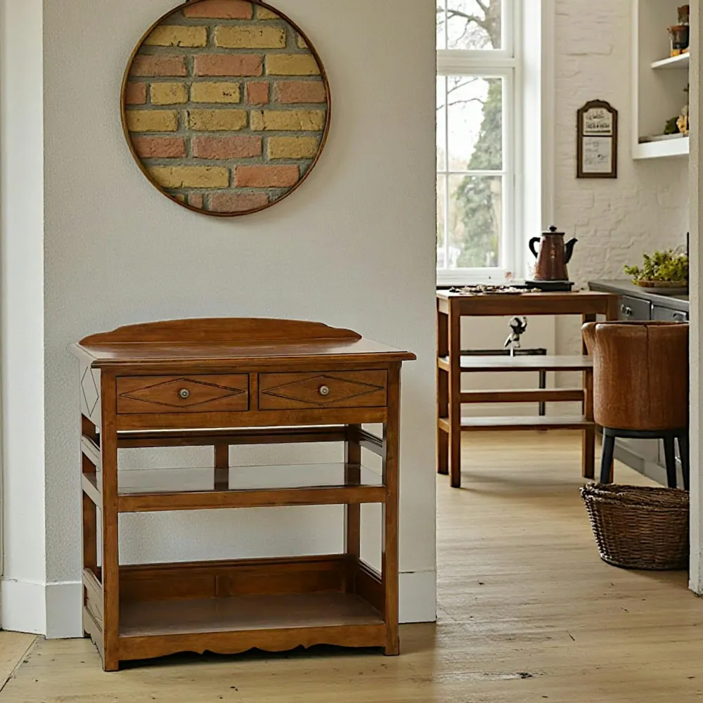 Meubles De Cuisine·Dessertes / Chariots|Tradition Desserte de cuisine Hévéa 2 tiroirs et 2 étagères 88x48x84cm