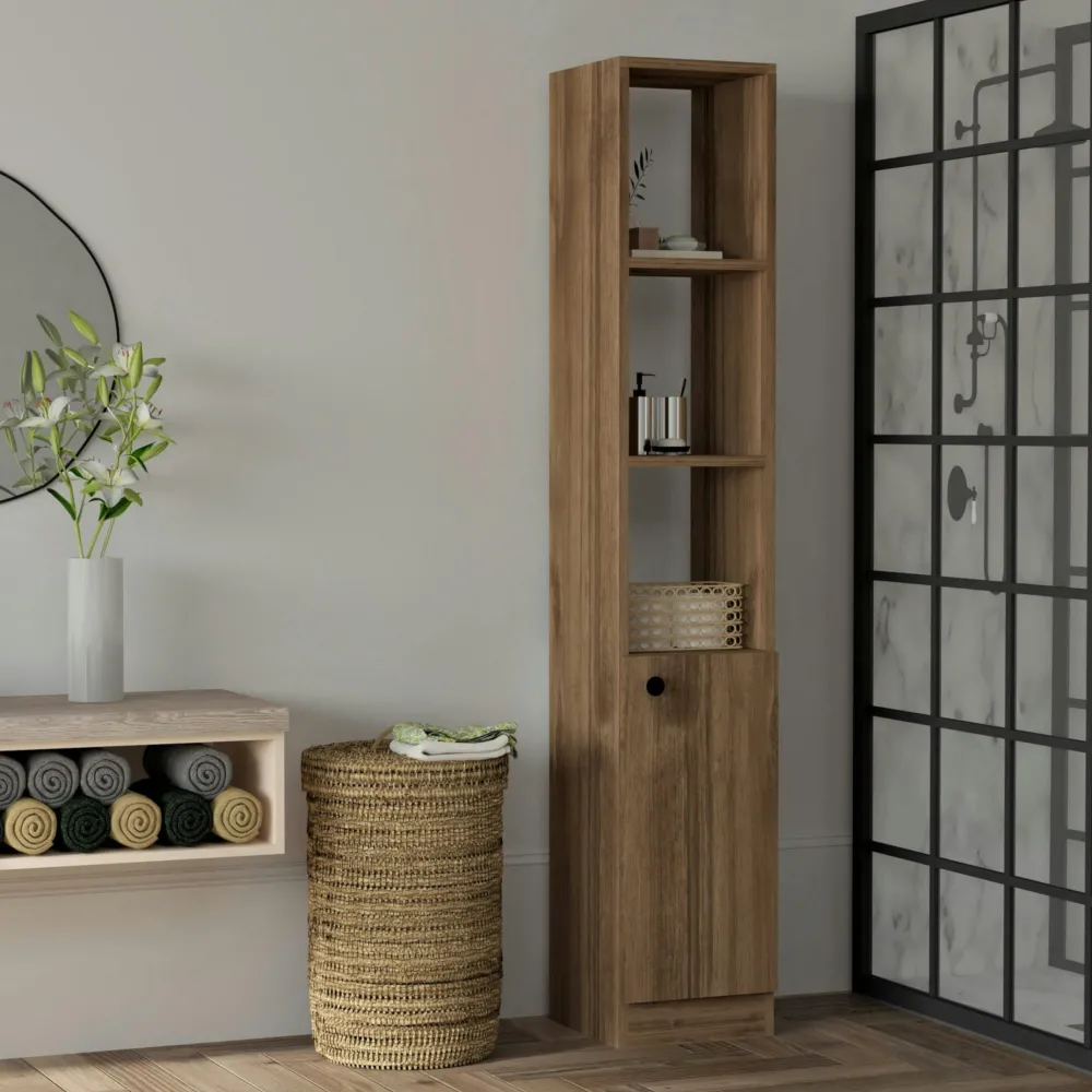 Meubles De Salle De Bains·Rangement Salle De Bains|MARFA Colonne salle de bains effet noyer, 1 porte 3 niches