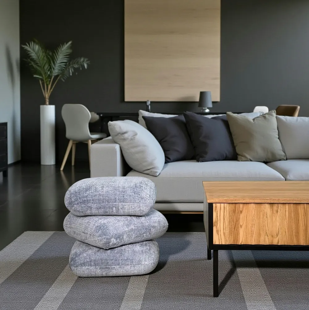 Meubles De Salon·Poufs|IENA Pouf pivotant gris foncé effet coussins empilés
