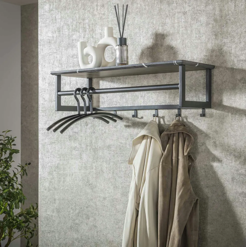 Meubles D’Entrée·Portemanteaux|Portemanteaux Industriels|RALF Portemanteau mural moderne 1 étagère effet céramique et 6 crochets