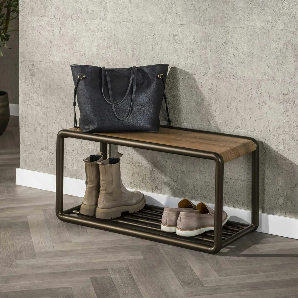 Meubles D’Entrée·Vestiaires|Meubles D’Entrée·Vestiaires / Meubles À Chaussures|Helsinki Banc à chaussures effet bois et métal cuivré