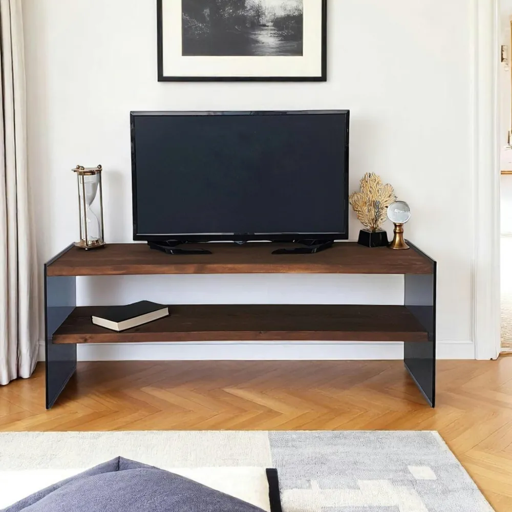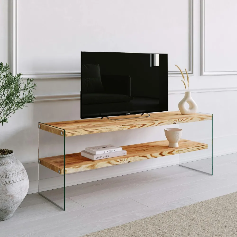 Meubles Tv En Bois|LHASA Meuble TV en bois clair et verre – 2 niveaux