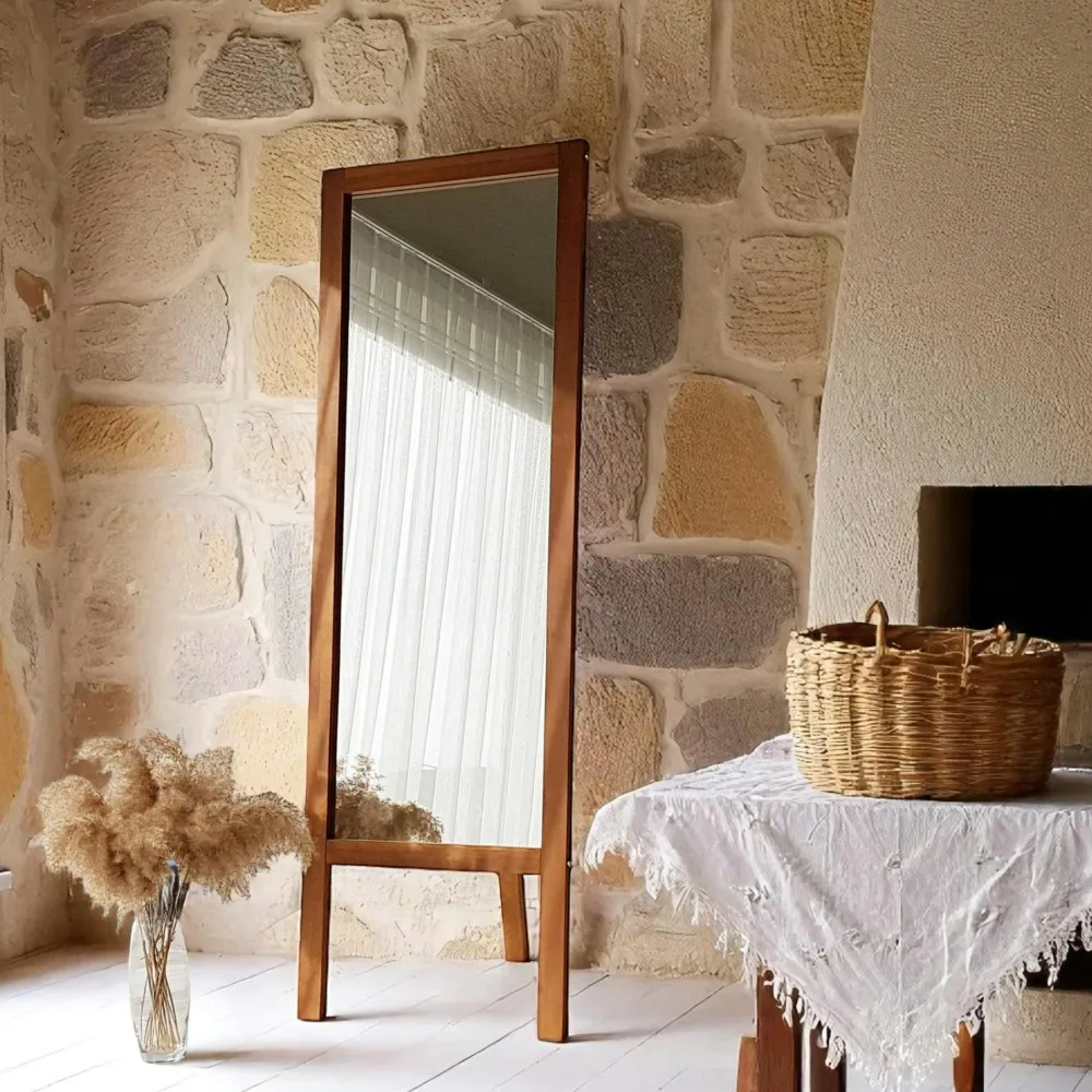 Miroirs|HILO Miroir vertical sur pied – bois clair, 2 crochets
