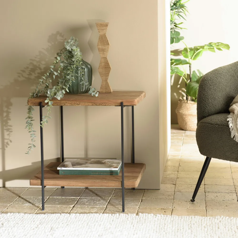 Sellettes En Métal|Bouts De Canapé Industriels|CRACOVIE Table d’appoint double plateau pin recyclé
