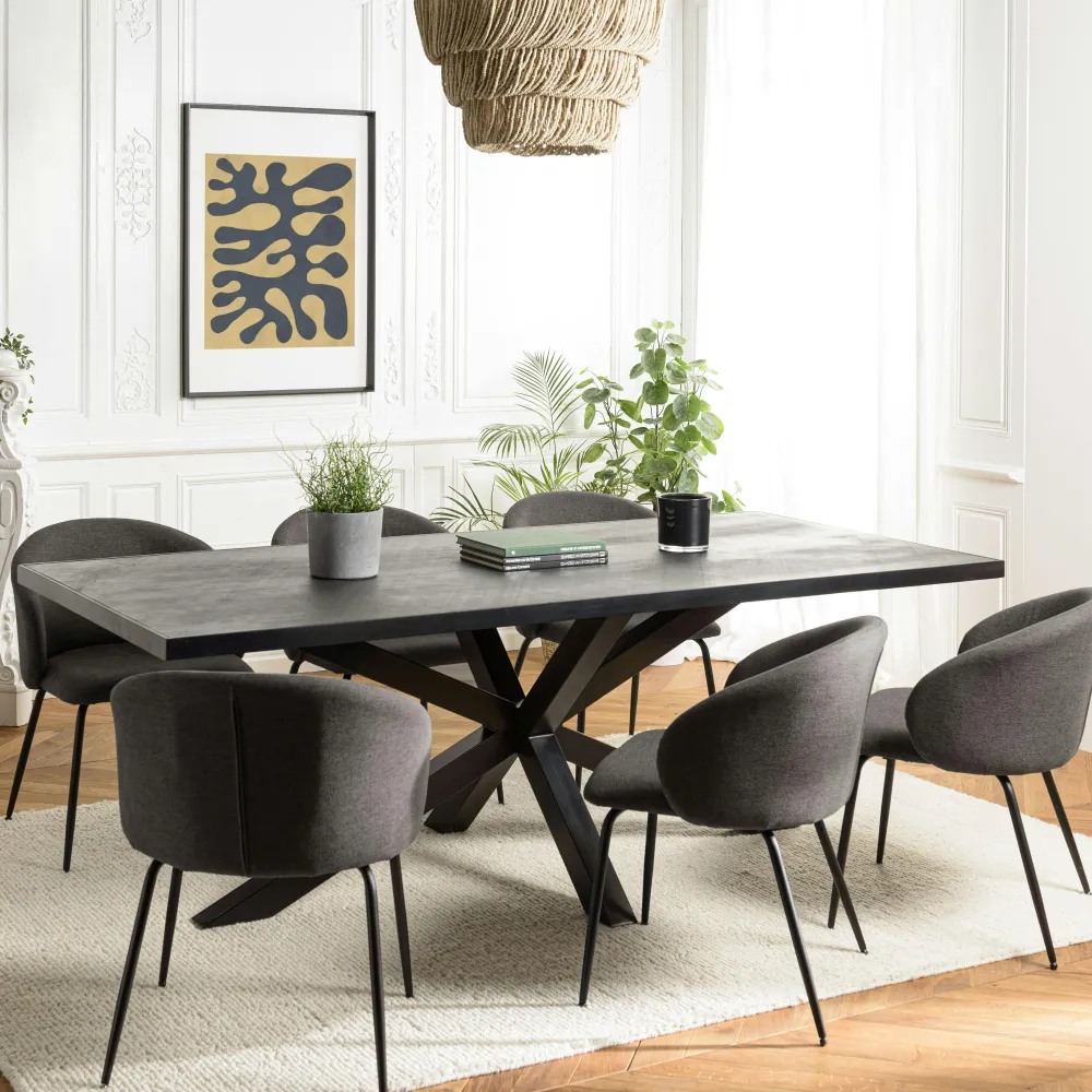 Tables À Manger Industrielles|Tables À Manger Rectangulaires|BIHAR Table à manger rectangulaire bois anthracite effet pierre 220 cm