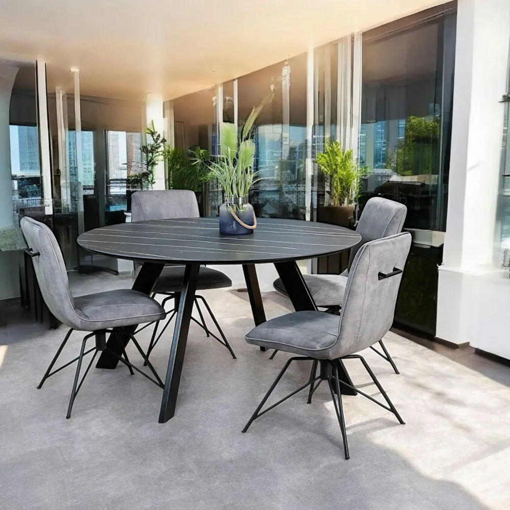 Tables À Manger Rondes|Tables À Manger En Céramique|BERGAME Table à manger en céramique noire mate forme ronde 140 cm