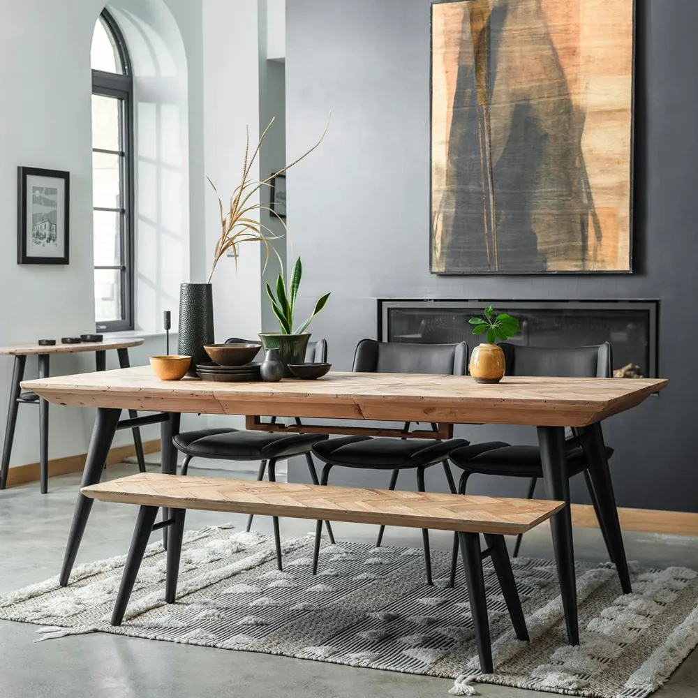 Tables À Manger Vintage|Tables À Manger Rectangulaires|FAGA Table extensible en bois recyclé FSC motif chevron 160-211 cm