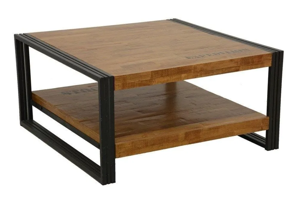 Tables Basses Carrées|Tables Basses Industrielles|Docker Table basse carrée hévéa recyclé naturel et métal noirci 2 plateaux 90X90X45cm