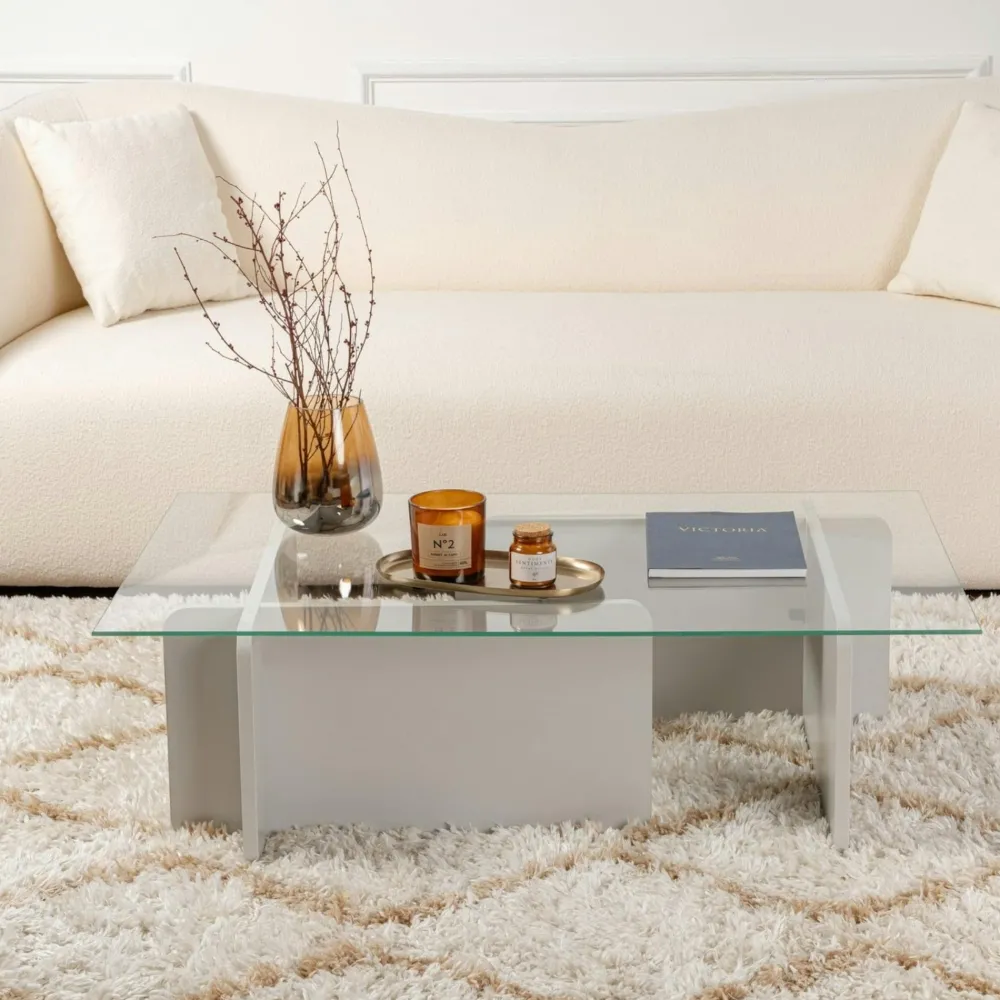 Tables Basses En Verre|SALTA Table basse verre déstructurée – base gris clair
