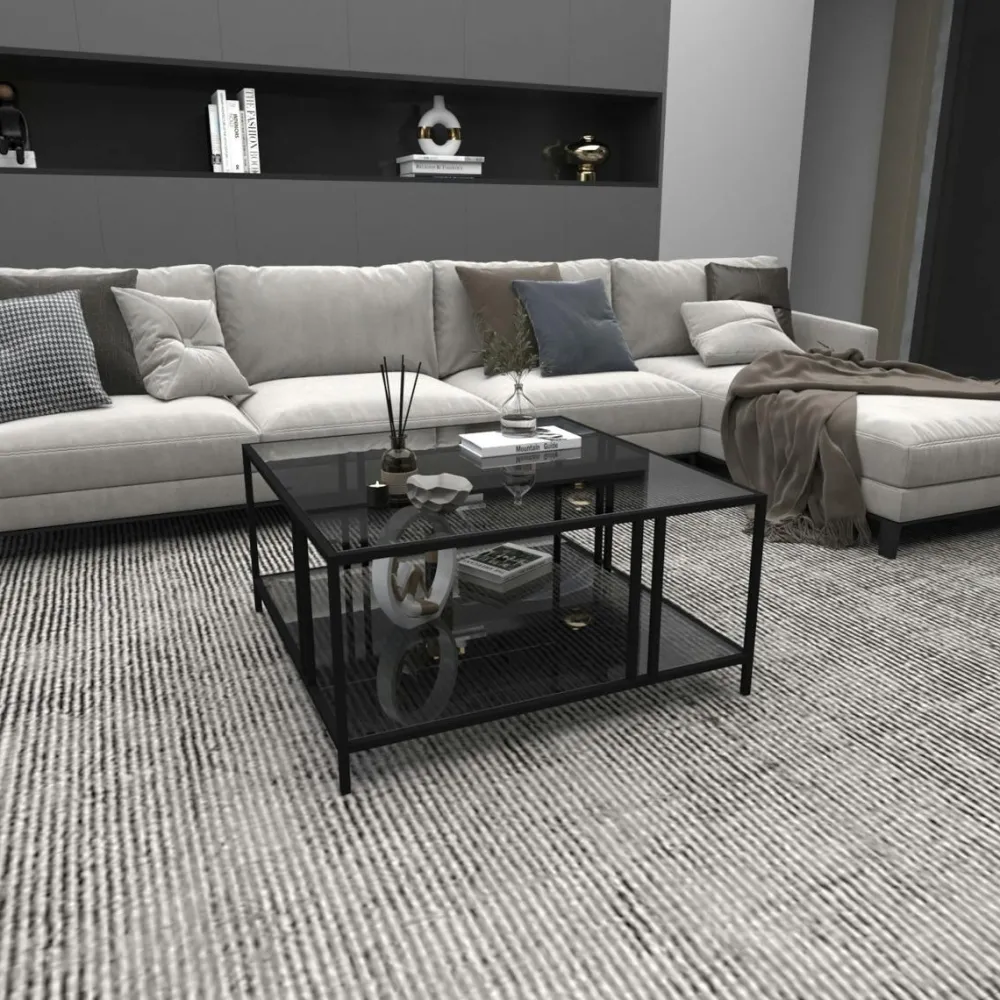Tables Basses En Verre|Tables Basses Carrées|TULUM Table basse en verre fumé carrée, double plateau