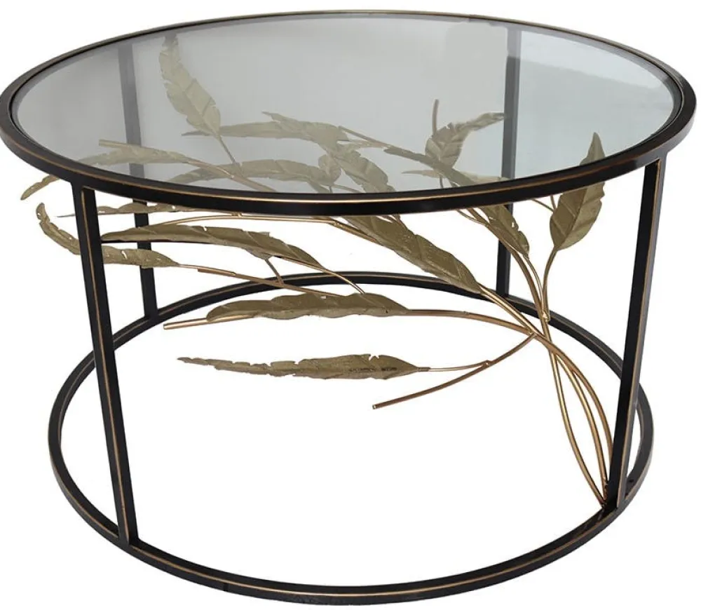 Tables Basses En Verre|Tables Basses Rondes|HIMALAYA Table basse ronde feuillage doré